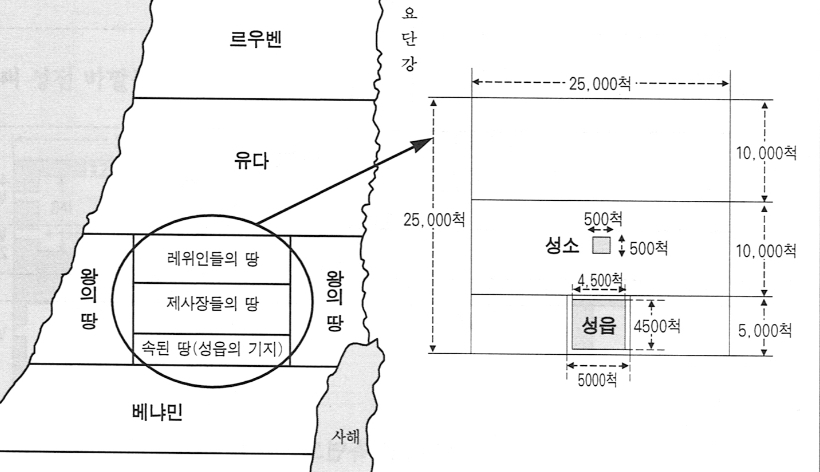 그렇다면 천국에서 성도들의 실제의 삶이 이렇다는 것을 어떻게 알 수 있는가? 그것은 지금 당장이라도 천국에 올라가서 확인해 볼 수 있다. 하지만 우리는 에스겔서 40~48장의 말씀을 통하여, 그와 같은 사실을 확인할 수가 있다. 에스겔에서는 새 하늘과 새 땅이 가나안 땅으로 묘사되어 있다. 그리고 새 예루살렘 성은 가나안 땅 중에서 예물로 드리는 땅으로 묘사되어 있다. 그리고 하나님의 보좌는 에스겔 성전으로 묘사되어 있다. 그러므로 천국의 땅을 기업으로 분배해 주는 과정에 드러난 사실에 따르면, 땅은 지위와 신분이 높은 자들이 성전을 중심으로 땅을 분배받게 되며, 그들이 그곳에 집을 짓고 살아간다는 것이다. 그러니까 에스겔서를 보면, 가나안 땅에서 가장 중심에 위치한 예루살렘 성을 중심으로 '예물로 드리는 땅'을 마련하라고 하셨다. 그 땅은 가로 세로가 각각 2만 5천 척이다(13.3km). 하나님께서는 '예물로 드리는 땅'을 1만 척, 1만 척, 5천 척으로 3등분하여, 한가운데 땅(2만 5천 척*1만 척)을 '지극히 거룩한 땅'이라고 구별하고 그 안에 가로 세로 500척 되는 성전을 지으라고 하셨다. 그리고 그 성전을 중심으로 사독 계열의 제사장들이 집을 짓고 살라고 하셨다. 그리고 '지극히 거룩한 땅' 바로 위에 '거룩한 땅'을 마련하는데, 이 땅도 역시 그 크기는 2만 5천 척에 1만 척의 크기로 만들고 거기에 레위인들이 집을 짓고 살라고 하셨다. 그리고 맨 아래 부분인 2만 5천 척에 5천 척 되는 땅은 '속된 땅(일반적인 땅)'이라고 부르고 거기에는 일반 백성이 와서 살라고 하셨다. 그리고 '예물로 드리는 땅' 좌우에 있는 땅은 왕과 군주에게 기업으로 주라고 하셨고, '예물로 드리는 땅' 위와 아래에는 이스라엘의 12지파들이 제비뽑아 그 땅에서 집을 짓고 살라고 하셨다. 그래서 북쪽으로는 유다 지파를 시작으로 하여 르우벤, 에브라임, 므낫세, 납달리, 아셀, 단 지파까지 7지파가 땅을 받아 거기에서 집을 짓고 살라고 하셨으며, 남쪽으로는 베냐민 지파를 시작으로 시므온, 잇사갈, 스불로, 갓 지파까지 5지파가 땅을 분배받아 거기에서 집을 짓고 살라고 하셨다. 우리는 이상의 사실을 통하여, 실제 천국에서도 제사장 그룹(제사장, 레위인, 일반 백성으로서 나실인)과 왕 그룹(왕과 군주)이 하나님의 보좌 가장 가까운 곳에 집을 짓고 살게 된다는 것을 알 수가 있는 것이다.