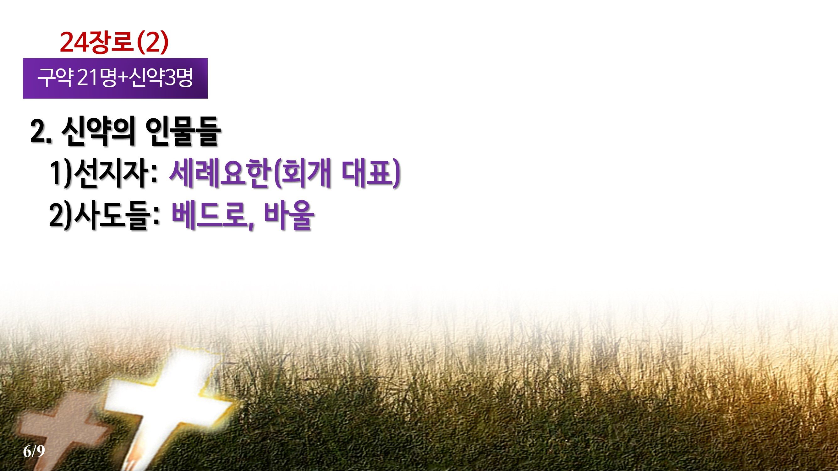 그리고 신약의 인물들로는 1)선지자로서 세례요한(회개 대표)이 있고, 2)사도들로 베드로, 바울이 있는 것 같다. 그러나 이것이 정확한 것인지를 나중에 더 계시가 진전되면 확실히 알 수 있지 않나 생각한다.