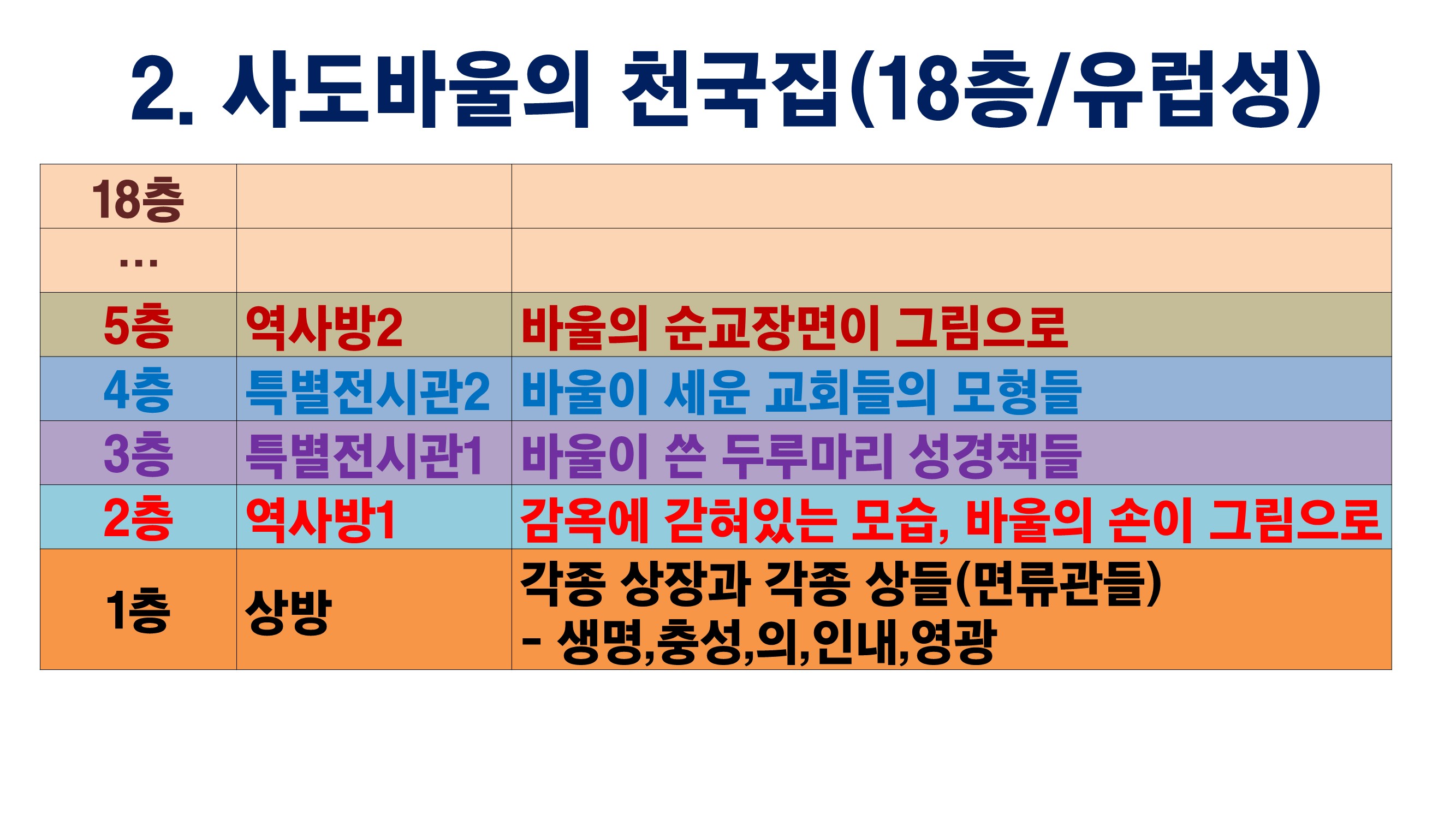 둘째, 신약시대의 인물인 사도 바울의 천국집은 18층인데, 유럽성처럼 보인다.
