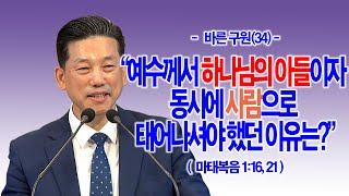 제목: [바른 구원(34)] 예수께서 하나님의 아들이자 동시에 사람으로 태어나셔야 했던 이유는?(마1:16,21)_동탄명성교회 정보배목사