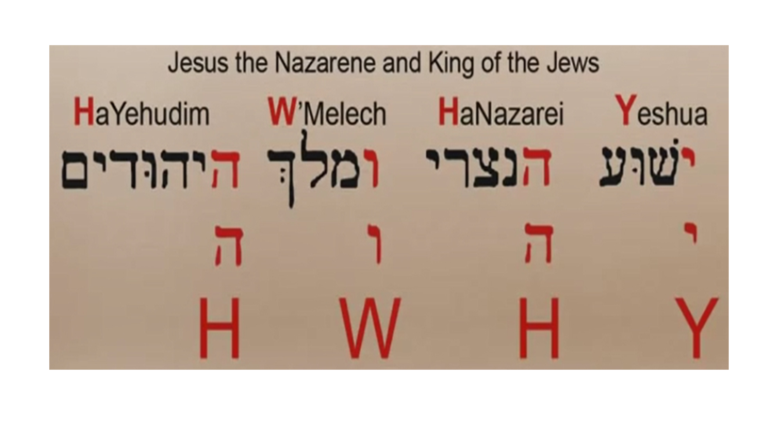 참고로, '여호와'라는 발음은 신명사문자(하나님의 이름으로 쓰인 4개의 히브리어 문자)인 '요오드 헤 와우 헤'를 발음한 것인데, 발음을 어떻게 하느냐에 따라 '여호와'라고도 발음할 수 있고, '야훼'라고도 발음할 수 있다. 그러나 신명사문자를 '여호와'로 발음하든, '야훼'로 발음하든 신명사문자는 하나님의 이름을 음역한 것이라고 하겠다.