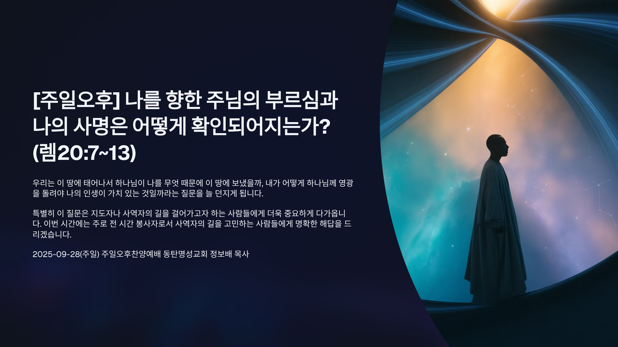 제목: 나를 향한 주님의 부르심과 나의 사명은 어떻게 확인되어지는가?(렘20:7~13)_동탄명성교회 정보배목사