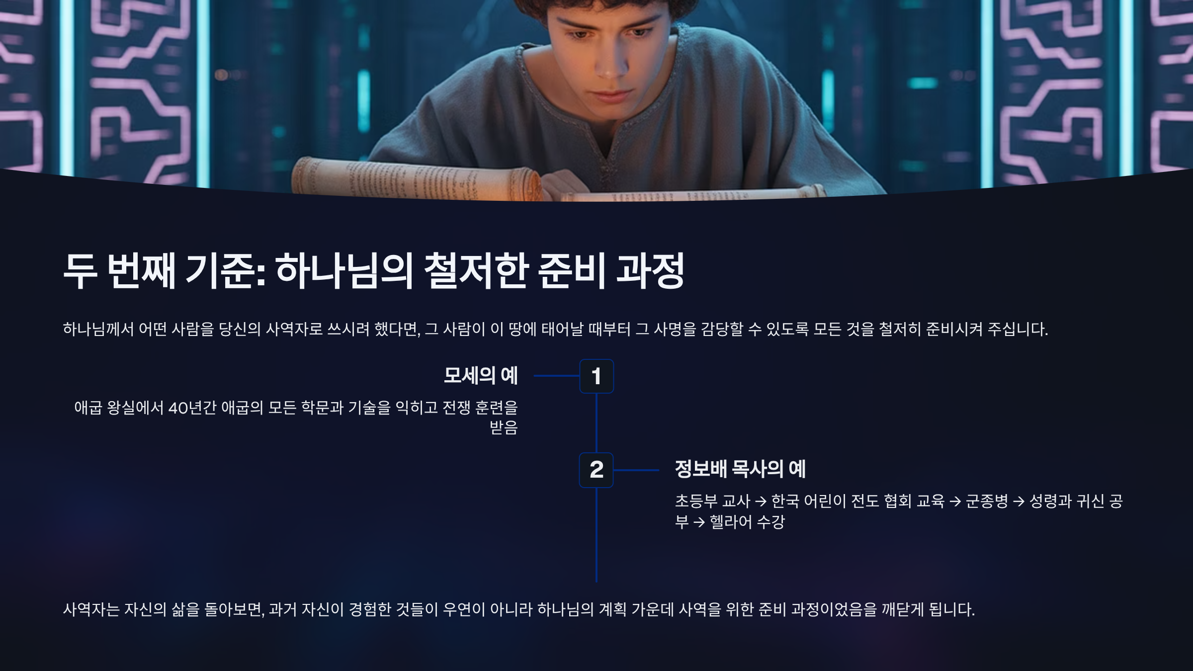 둘째, 사역을 위하여 하나님께서 안배해주시는 철저한 준비 과정이 있다는 것이다.