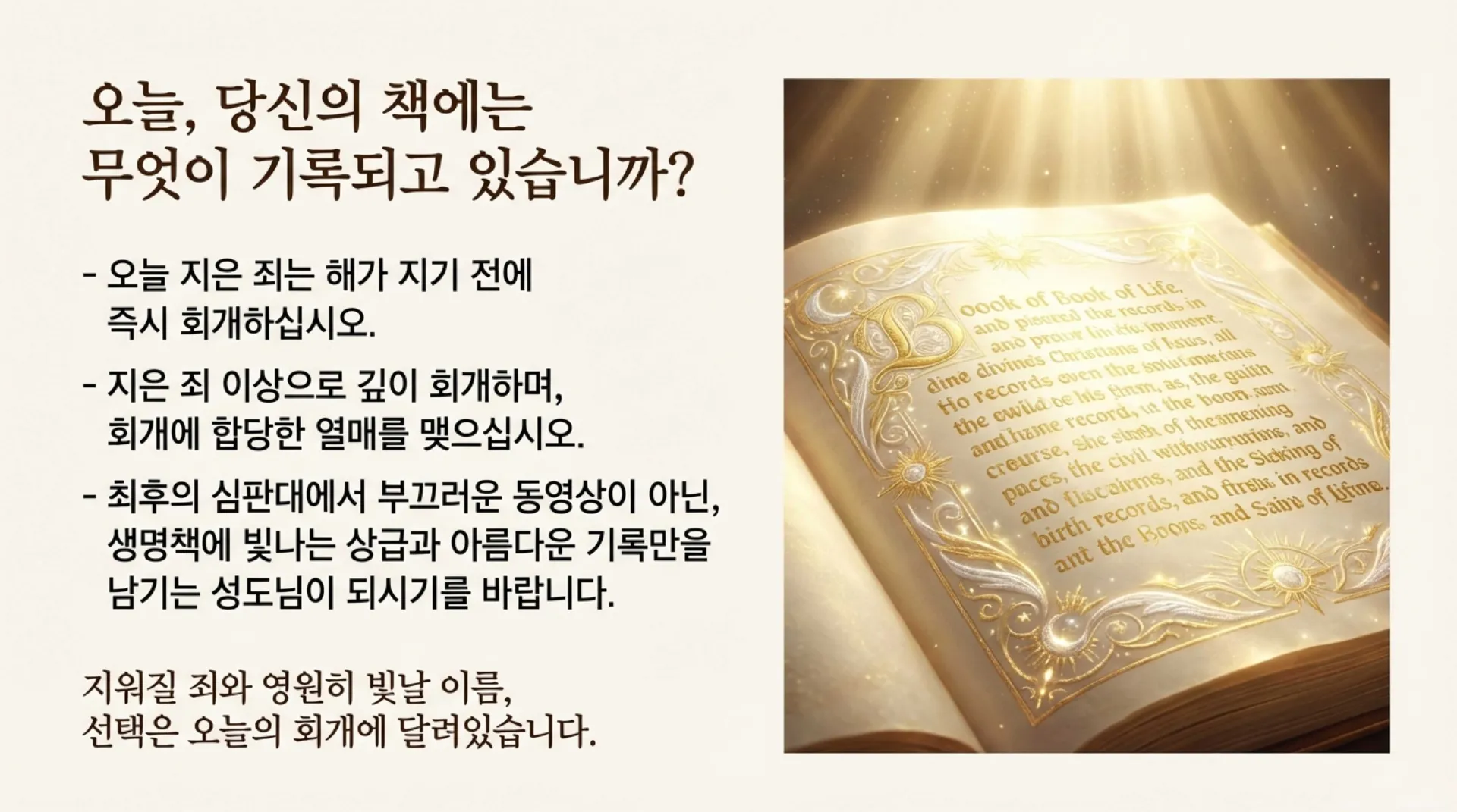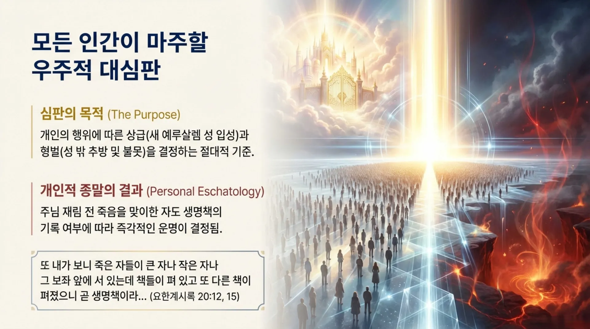 #아침묵상 #천국복음 #생명책 #행위책 #요한계시록 #심판 #회개 #천국 #상급 #정보배목사