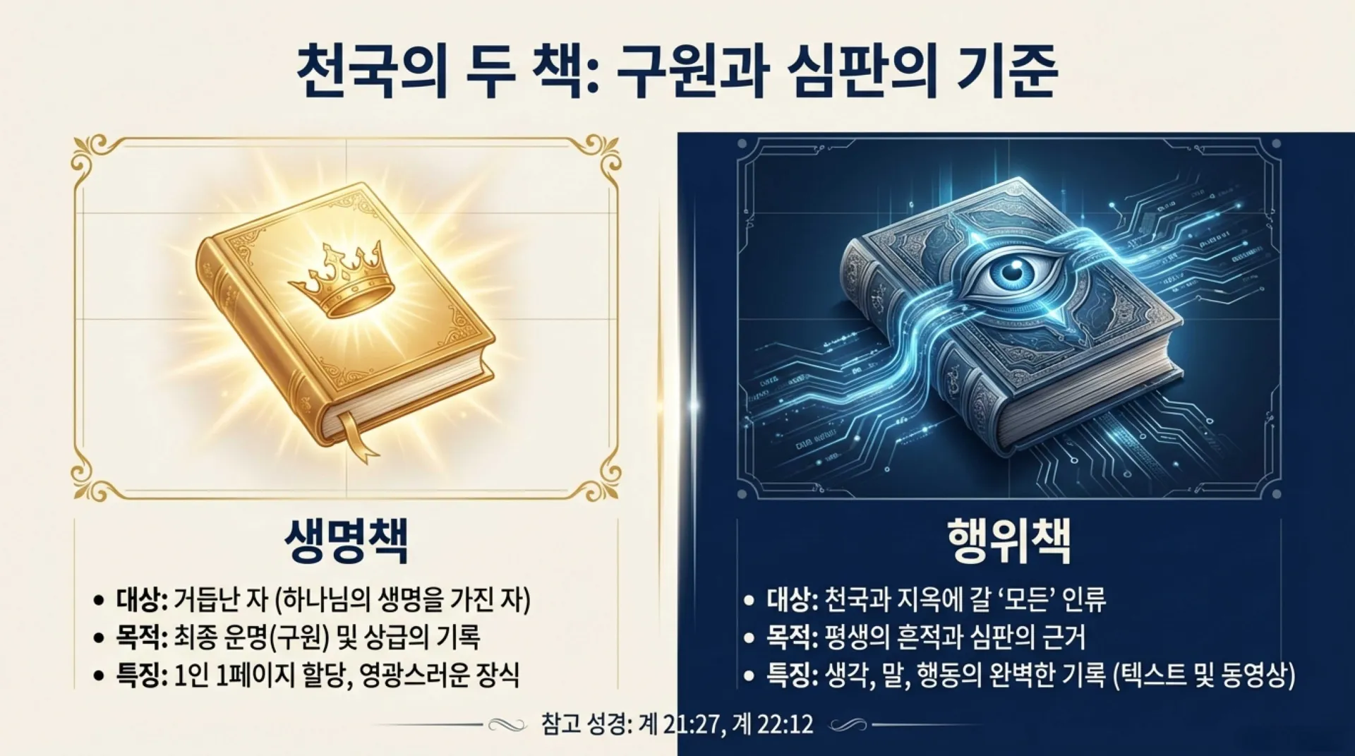 1. 천국에 있는 생명책과 행위책은 무슨 책인가?