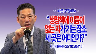 5. [바른 구원(58)] 생명책에 이름이 없는 자가 가는 장소 세 곳은 어디인가?(마25:10,30,41)_2024-07-30(화)