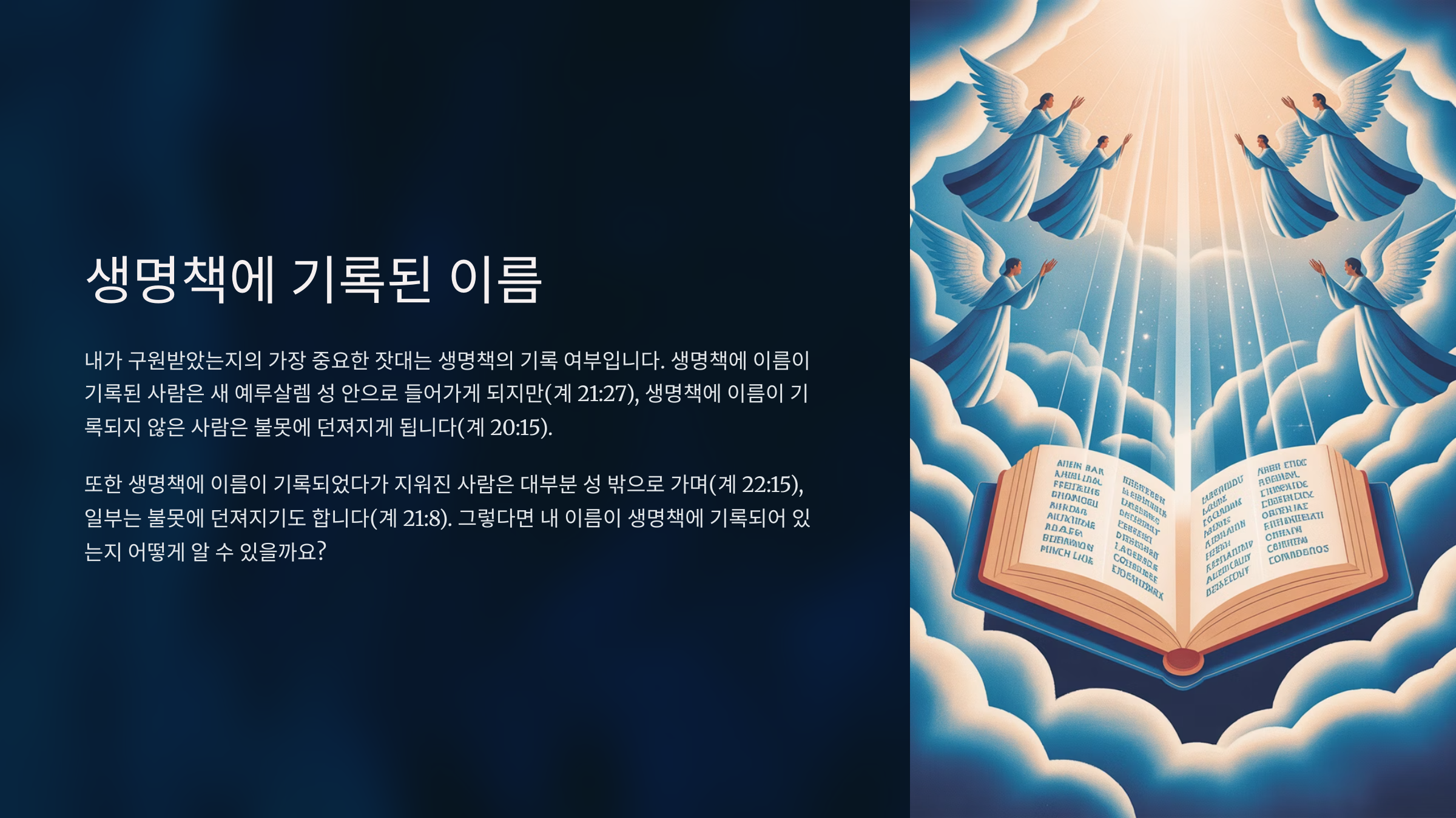 3. 천국에서 생명책과 또다른 행위책은 무엇이 기록된 어떠한 책인가?(계20:11~15)_2024-08-18(주일)