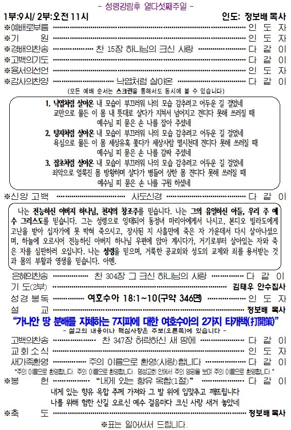 1)주일낮1부예배(09시)( https://youtube.com/live/Eihf4nCAJeg ) 검색:“회개와천국복음”