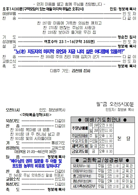 매주 교회소식과 함께 예배 일정을 안내드립니다.