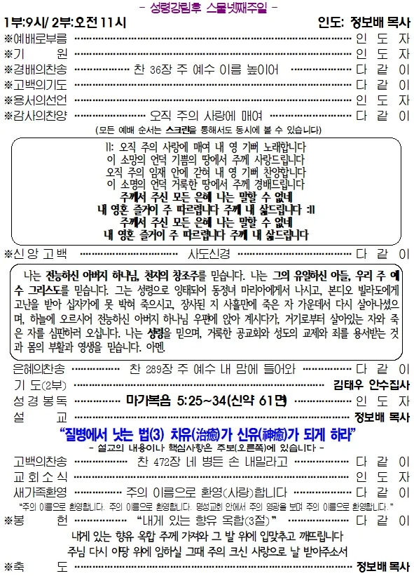 11. 2025-09-21(주일) 교회소식 및 예배안내_성령강림후 열다섯째주일
