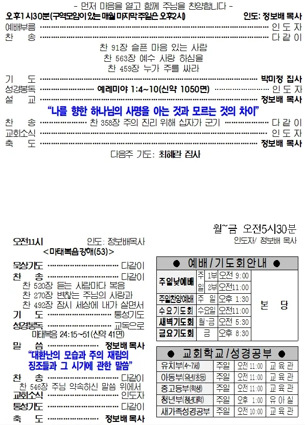 한 주간의 예배와 사역 소식을 통해 공동체가 하나 되어 주님의 뜻 안에서 동행하시기 바랍니다.