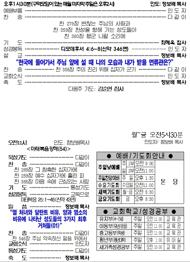 4. 2025-11-09(주일) 교회소식 및 예배안내_성령강림후 스물두번째주일
