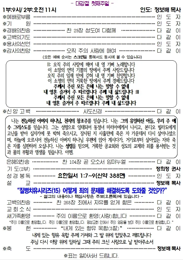 11. 2025-09-21(주일) 교회소식 및 예배안내_성령강림후 열다섯째주일