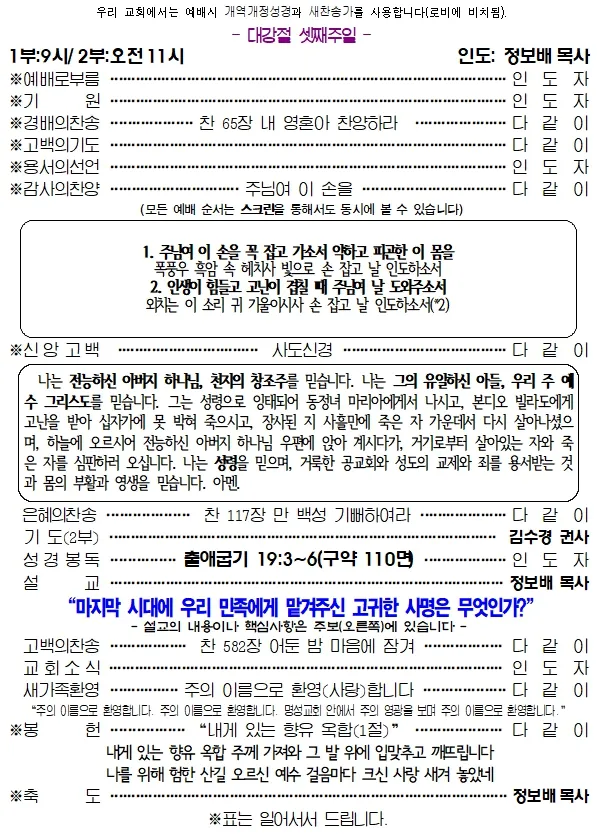 585 2025-10-19(주일) 교회소식 및 예배안내_성령강림후 열아홉째주일 file 갈렙 2025.10.18 500