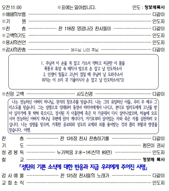 11. 2025-10-19(주일) 교회소식 및 예배안내_성령강림후 열아홉째주일
