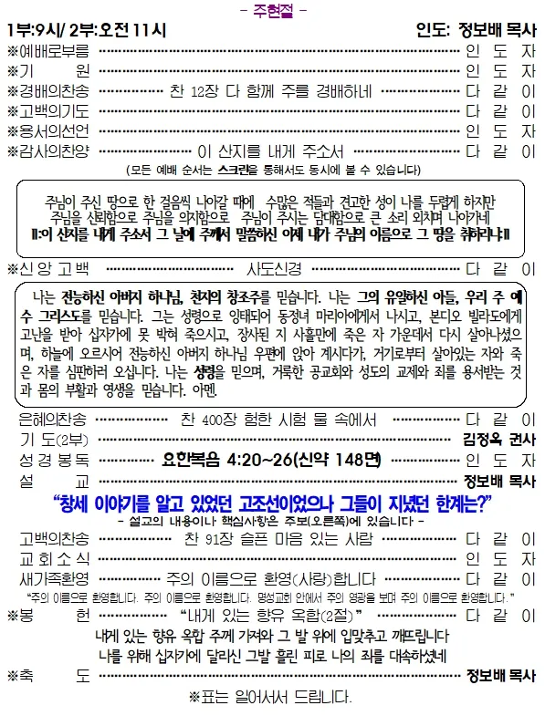 15. 2025-10-26(주일) 교회소식 및 예배안내_성령강림후 스무째주일,추수감사주일