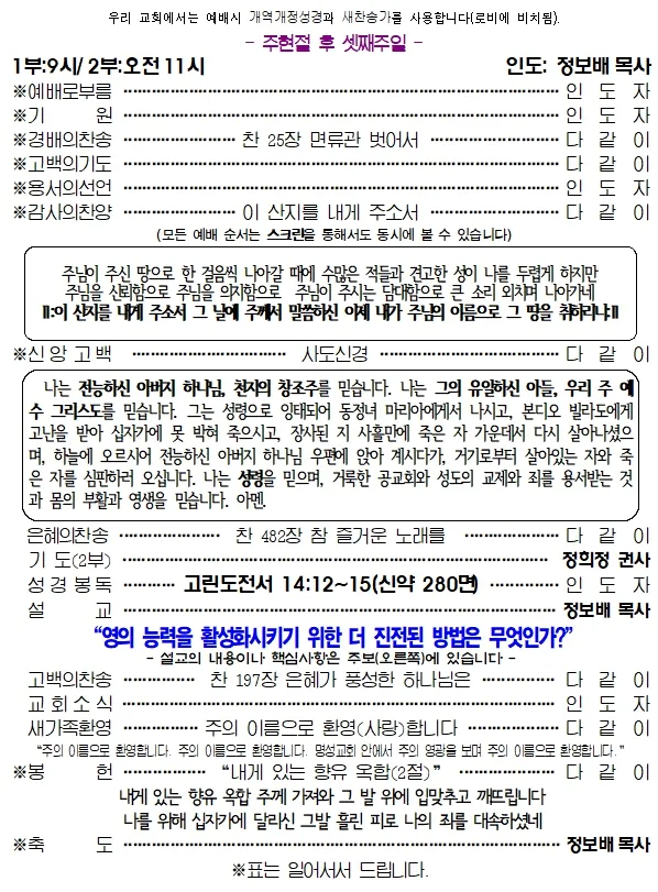 17. 2025-10-19(주일) 교회소식 및 예배안내_성령강림후 열아홉째주일