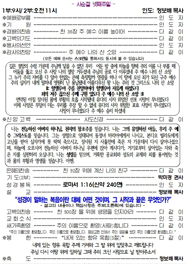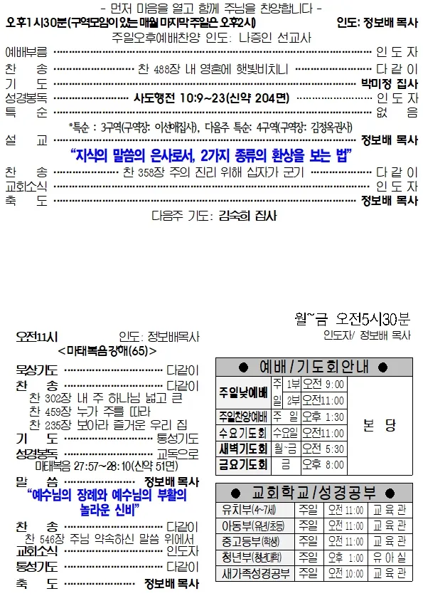 교회소식 및 예배안내