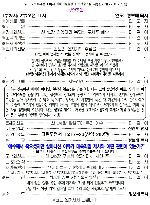 2026년 04월 05일(주일) 교회소식 및 예배안내입니다.