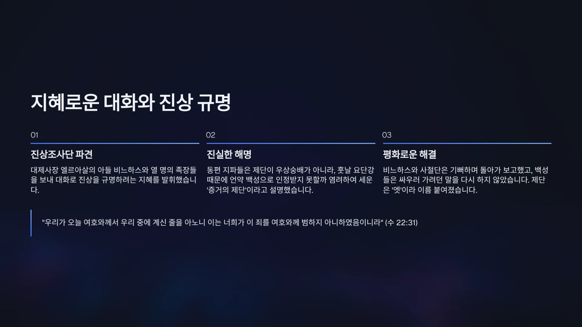 18. [여호수아 강해(39)] 그날 진상조사단의 수장 비느하스는 어떤 결정을 내렸어야 했는가?(수22:30~34)_2025-10-05(주일)