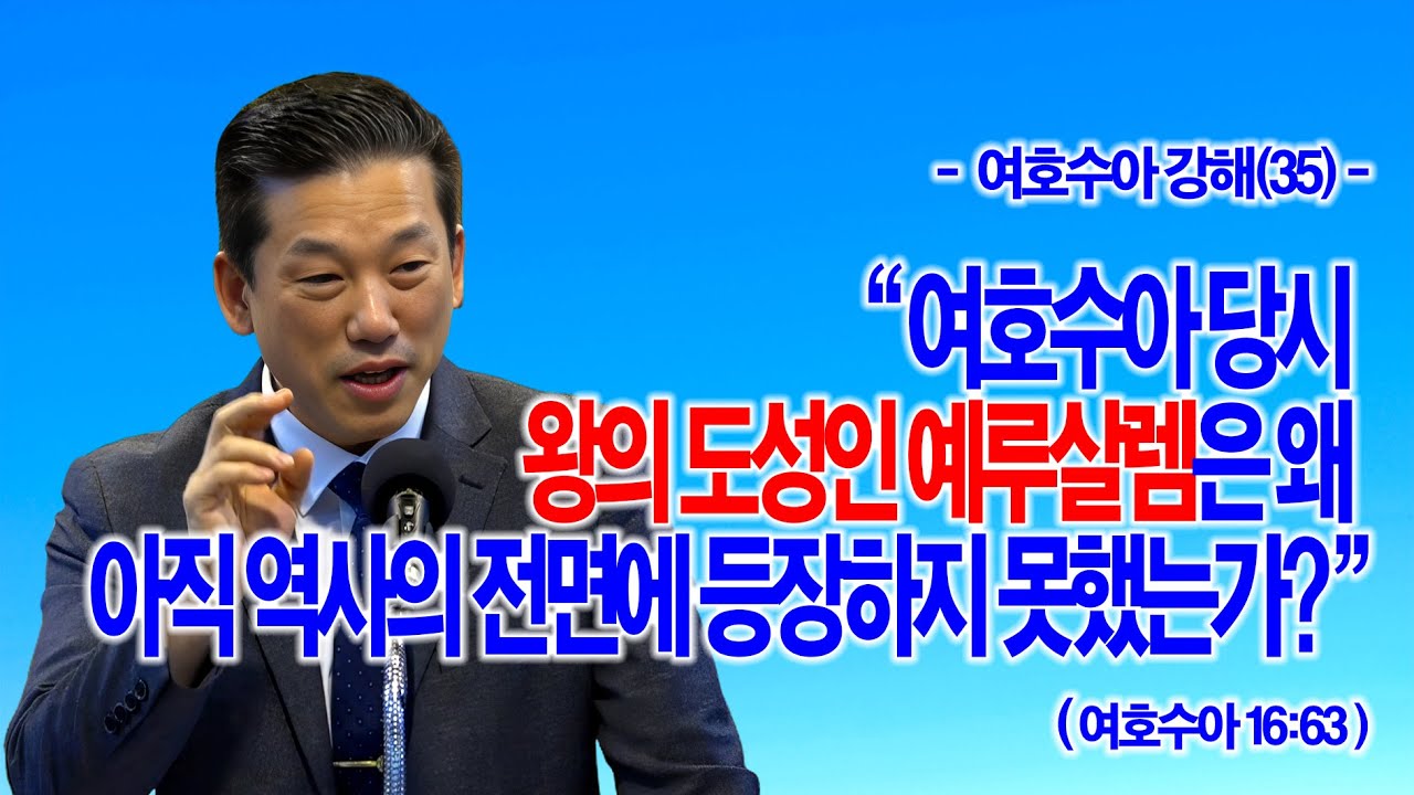 제목: [여호수아 강해(35)] 여호수아 당시 왕의 도성인 예루살렘은 왜 아직 역사의 전면에 등장하지 못했는가?(수15:63)_동탄명성교회 정보배목사 https://youtu.be/uTfhSDQc170