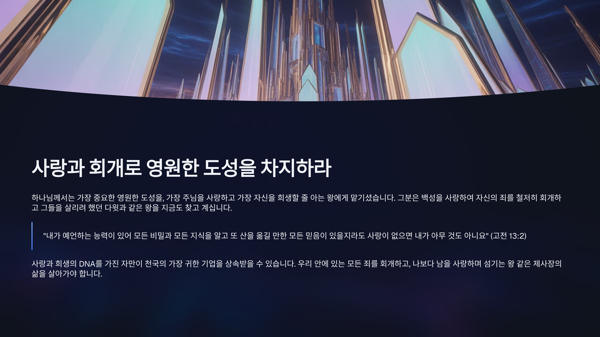 6. 나오며: 사랑과 회개로 영원한 도성을 차지하라