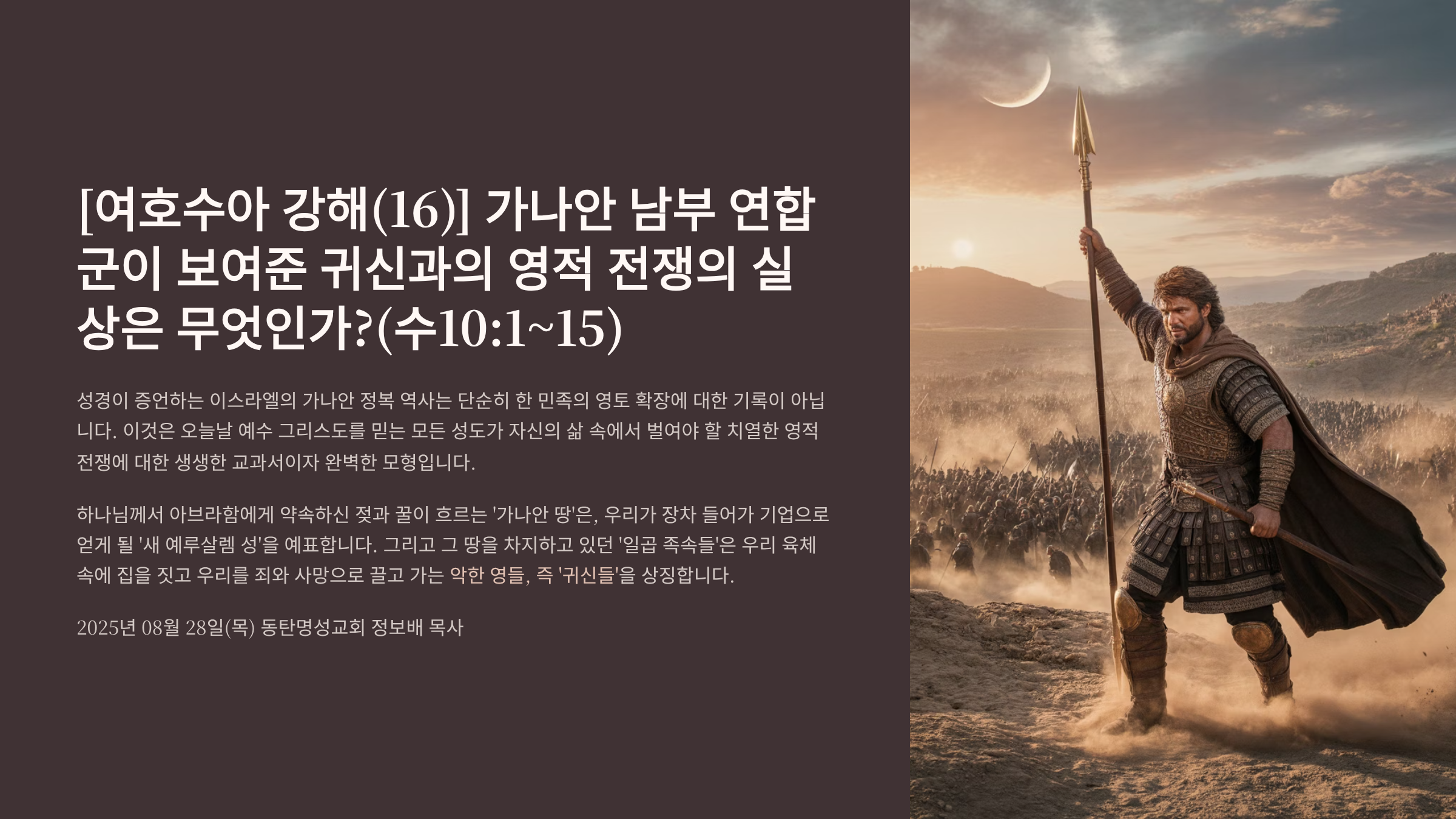 16. [여호수아 강해(16)] 가나안 남부 연합군이 보여준 귀신과의 영적 전쟁의 실상은 무엇인가?(수10:1~15)_2025-08-28(목)