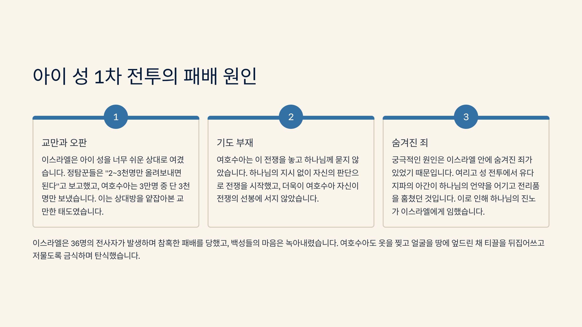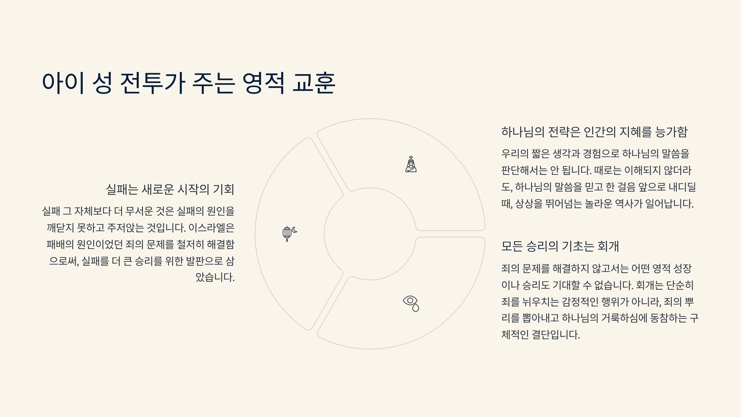 아이 성 2차 전투의 승리는 우리에게 세 가지 중요한 영적 진리를 가르쳐 준다.