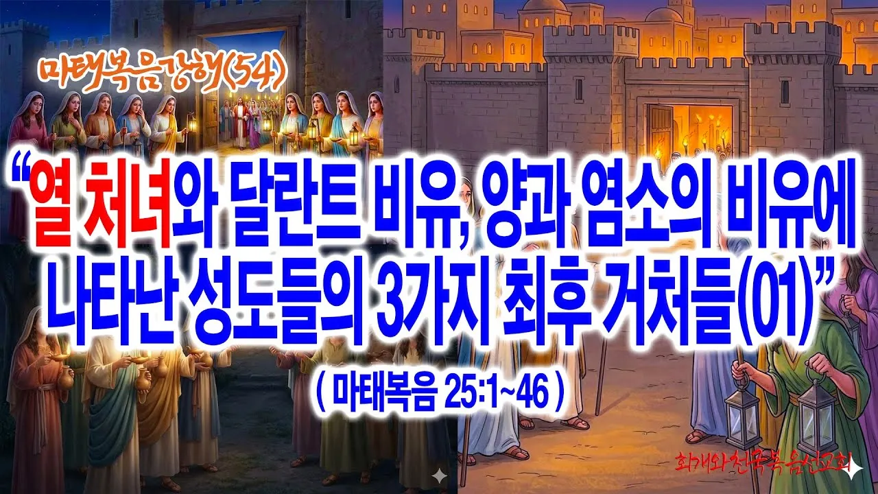 9. [마태복음강해(54)] 열 처녀와 달란트 비유, 양과 염소의 비유에 나타난 성도들의 3가지 최후 거처들(01)(마25:1~46)_2025-12-10(수)