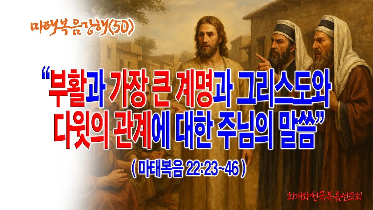 제목: [마태복음강해(50)] 부활과 가장 큰 계명과 그리스도와 다윗의 관계에 대한 주님의 말씀(마22:23~46)_동탄명성교회 정보배 목사