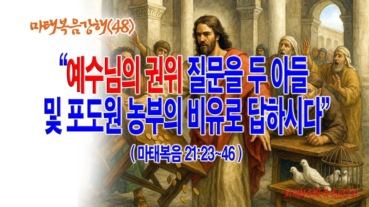 제목: [마태복음강해(48)] 예수님의 권위 질문을 두 아들 및 포도원 농부의 비유로 답하시다(마21:23~46)_동탄명성교회 정보배목사