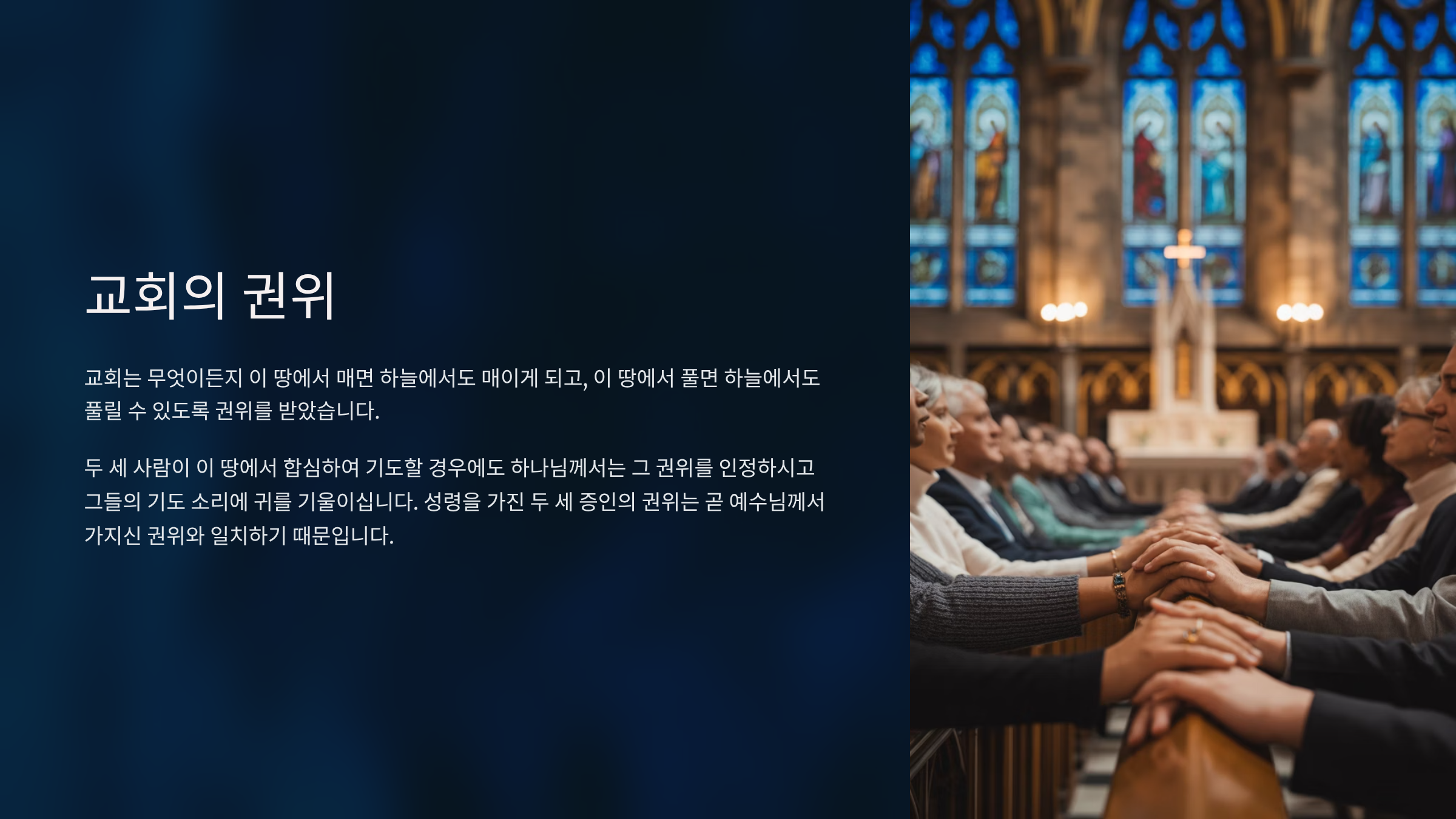 그렇다면, 왜 성도들은 자신의  형제가 죄를 범했을 때에 그 형제가 돌이킬 수 있도록 회개할 기회를 주어야 하는가? 그것은 교회에게 주신 하나님의 권위 때문이다. 교회는 무엇이든지 이 땅에서 매면 하늘에서도 매이게 되고, 이 땅에서 풀면 하늘에서도 풀릴 수 있도록 권위를 주셨기 때문이다(마 18:18). 특히 두 세 사람이 이 땅에서 합심하여 기도할 경우에도 하나님께서는 그 권위를 인정하시고 그들의 기도 소리에 귀를 기울인다고 하셨다(마 18:19). 왜냐하면 성령을 가진 두 세 증인의 권위는 곧 예수님께서 가지신 권위와 일치하기 때문이다.