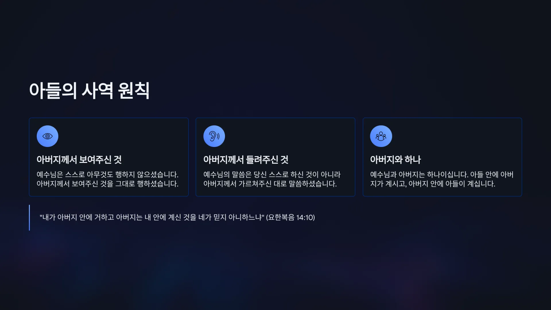 2. 아버지와 아들의 관계 가운데 아들의 사역의 원칙은 무엇인가?
