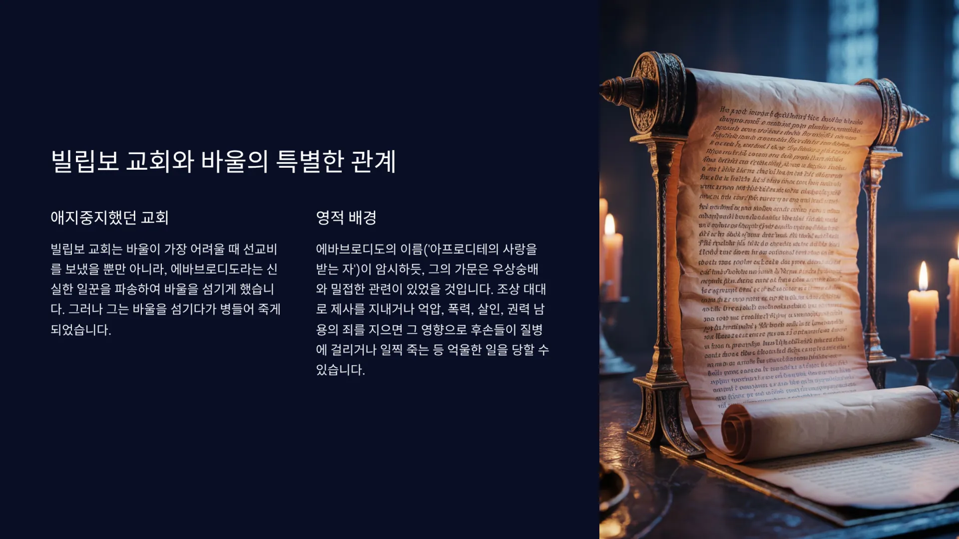 지난 시간에 말씀드렸듯이, 그의 이름('아프로디테의 사랑을 받는 자')이 암시하듯, 그의 가문은 우상숭배와 밀접한 관련이 있었을 것이다. 조상 대대로 제사를 지내거나 억압, 폭력, 살인, 권력 남용의 죄를 지으면 그 영향으로 후손들이 질병에 걸리거나 일찍 죽는 등 억울한 일을 당할 수 있다. 에바브로디도의 병듦 역시 이러한 영적 배경과 무관하지 않을 것이다. 바울은 병에서 회복된 에바브로디도 편에 이 편지를 보내면서, 빌립보 교회가 당면한 문제들까지 함께 말씀하고 있다. 그중에서도 빌립보서 3장에서는 교회에 침투한 두 가지 이단 세력에 대해 경고하는 말씀이다.