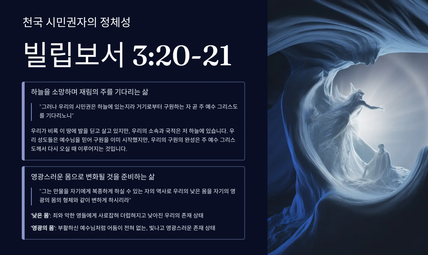 2. [빌립보서 강해(12)] 천국의 시민권자는 어떻게 살아야 주님의 기쁨이자 면류관이 될 수 있는가?(빌3:17~4:1)_2025-11-06(목)