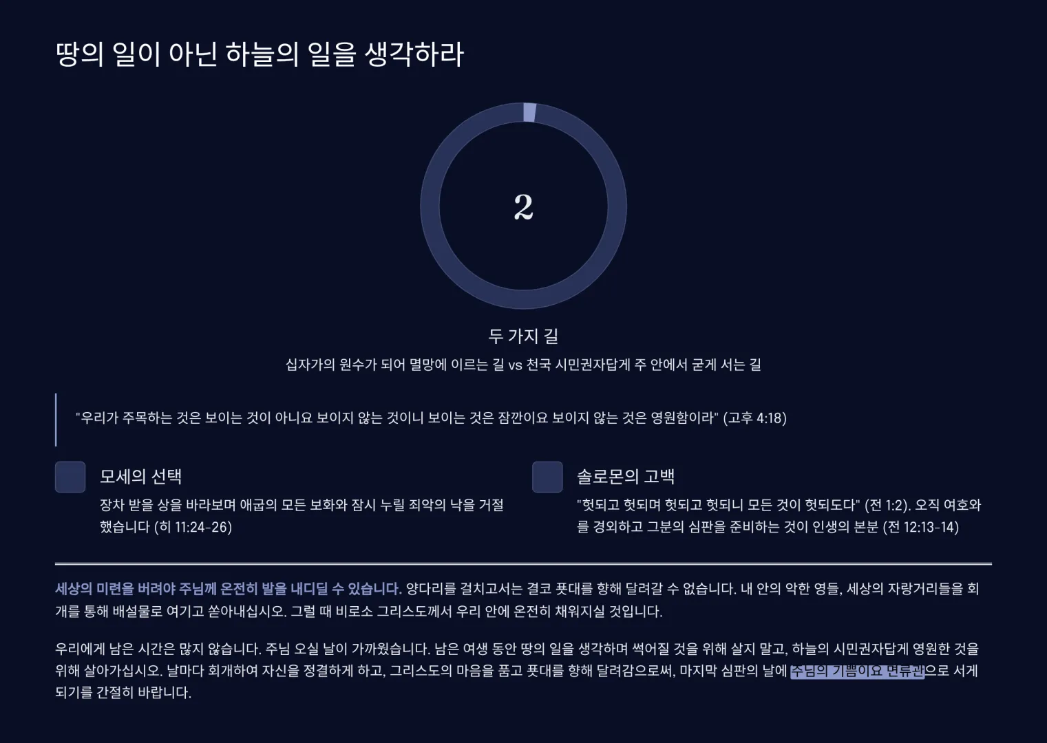 6. 나오며: 땅의 일이 아닌 하늘의 일을 생각하라