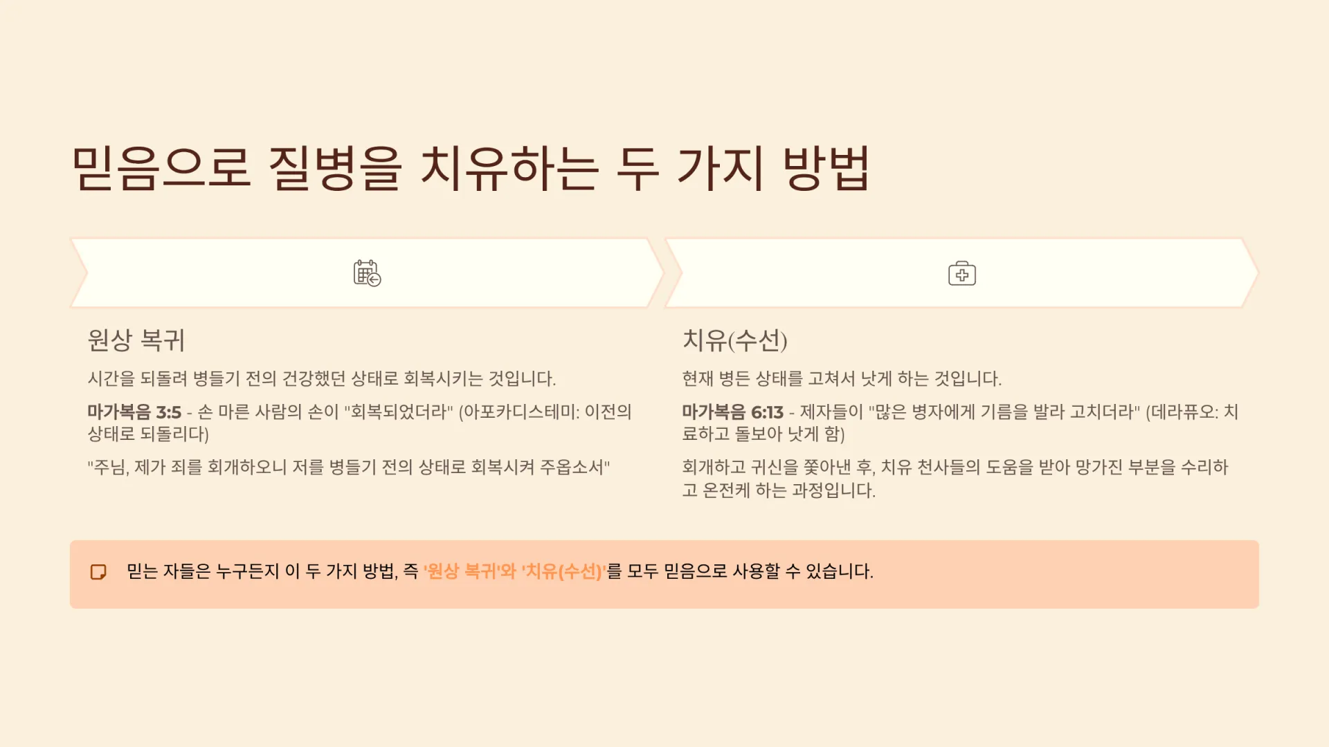 3. 하나님의 믿음을 사용하여 질병을 치유하는 두 가지 방법은 무엇인가?