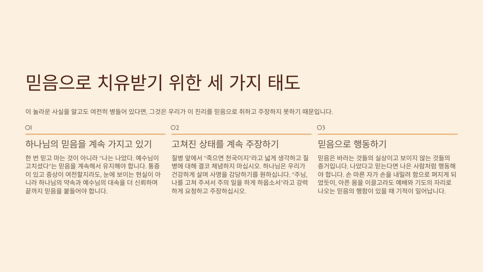 6. 믿음으로 치유받기 위해 우리는 어떤 태도를 가져야 하는가?