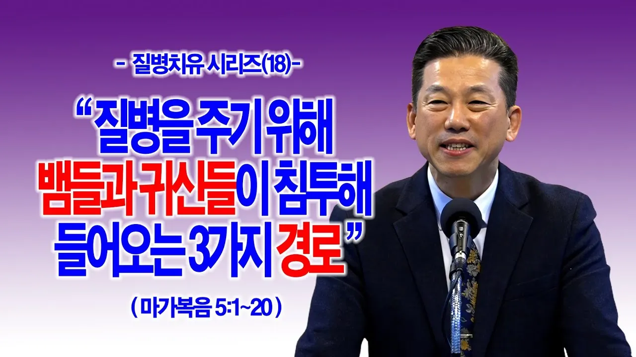 2025-12-05(금) 금요기도회 제목: [질병치유시리즈(18)] 질병을 주기 위해 뱀들과 귀신들이 침투해 들어오는 3가지 경로(막5:1~20)_동탄명성교회 정보배 목사 https://youtu.be/hmZusKGEaS4 1. 들어가며 이번 시간에 오늘 우리는 질병 치유 시리즈 열여덟 번째...