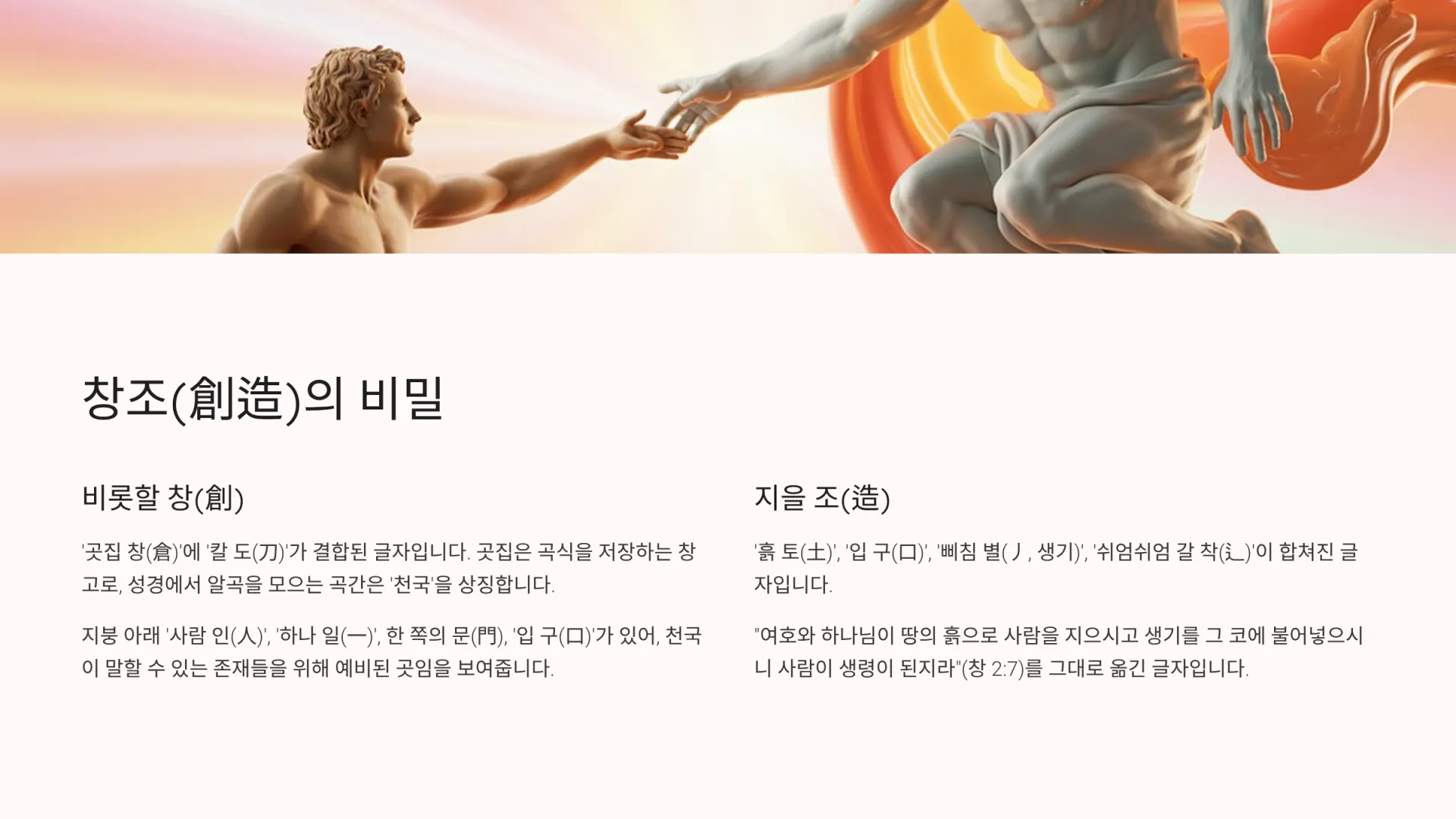 4. '창조(創造)' 속에 담긴 흙(土)과 입(口)의 비밀은 무엇인가?