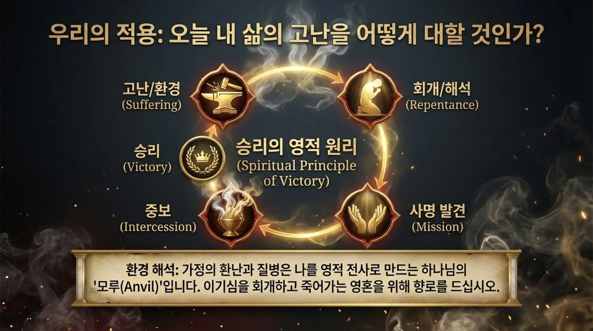 그는 더 이상 목숨을 구걸하는 나약한 인간이 아니었다. 백성을 살리기 위해 자신의 몸을 기꺼이 불사르는 진정한 대제사장이요, 죽음의 두려움과 이기심을 온전히 이겨낸 찬란한 '이기는 자'로 거듭난 것이다.