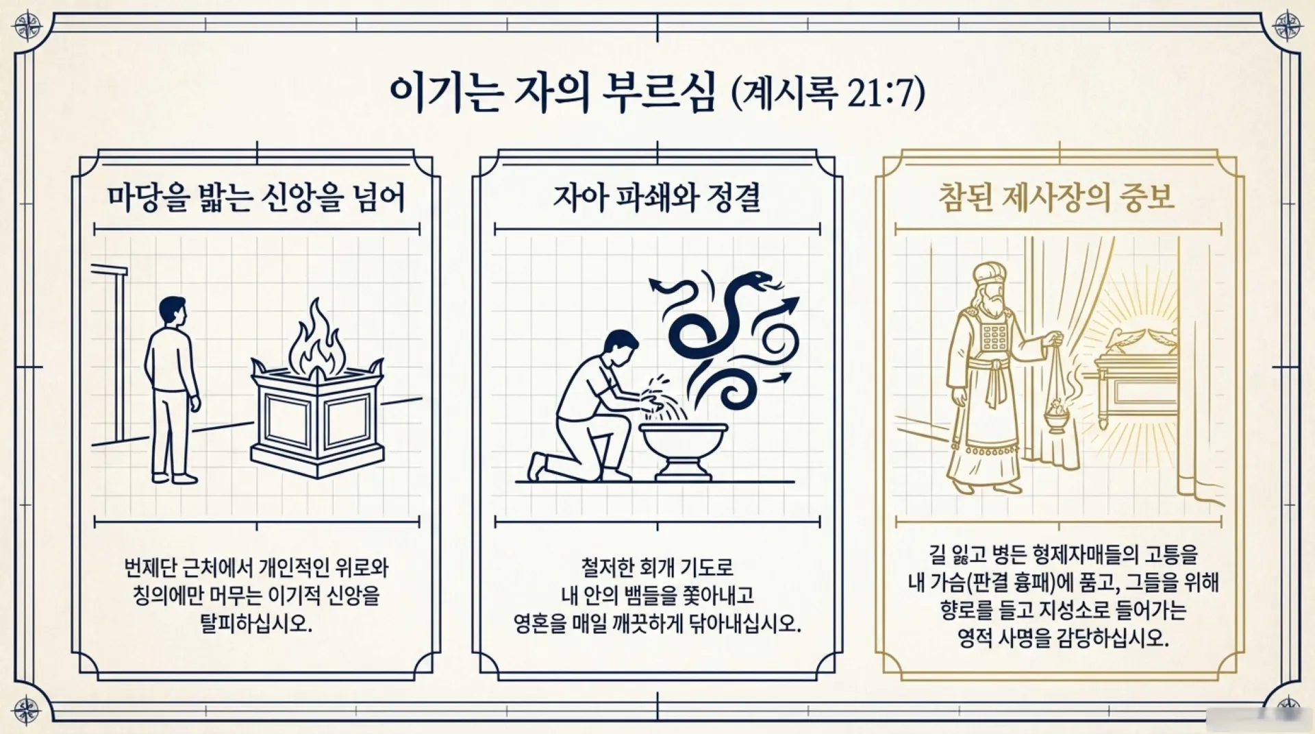 8. 대속죄일의 정결을 완성하신 대제사장 예수 그리스도를 믿는 우리는, 이 땅에서 어떤 영적 사명(이기는 자)을 감당해야 하는가?