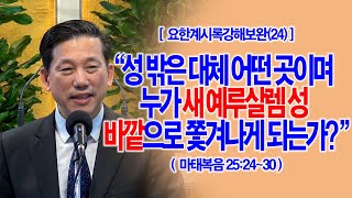 제목: [요한계시록강해보완(24)] 성 밖은 대체 어떤 곳이며 누가 새 예루살렘 성 바깥으로 쫓겨나게 되는가?(마25:24~30)_동탄명성교회 정보배목사