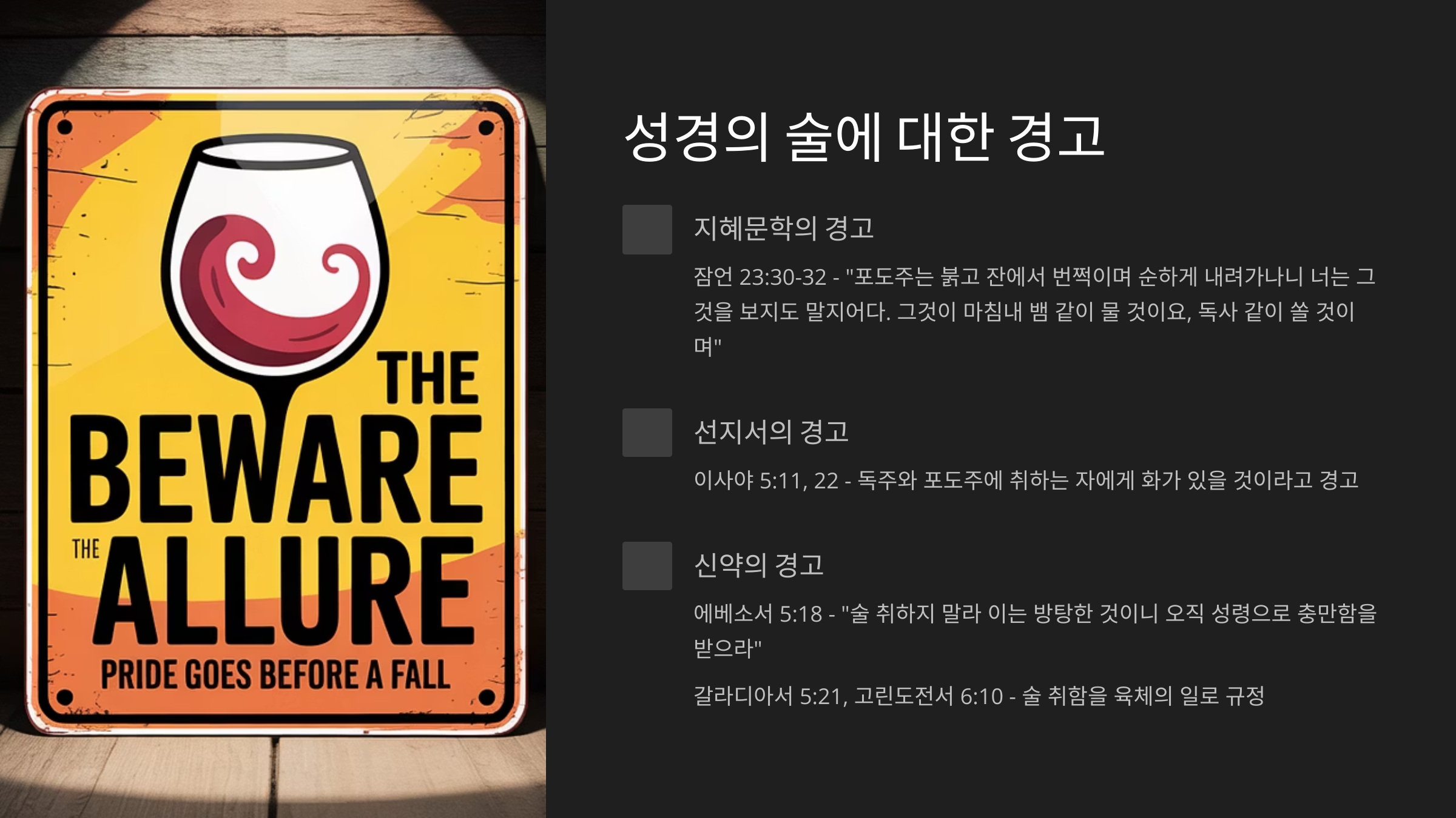 2. 성경은 술에 대해 어떤 경고를 하고 있는가?