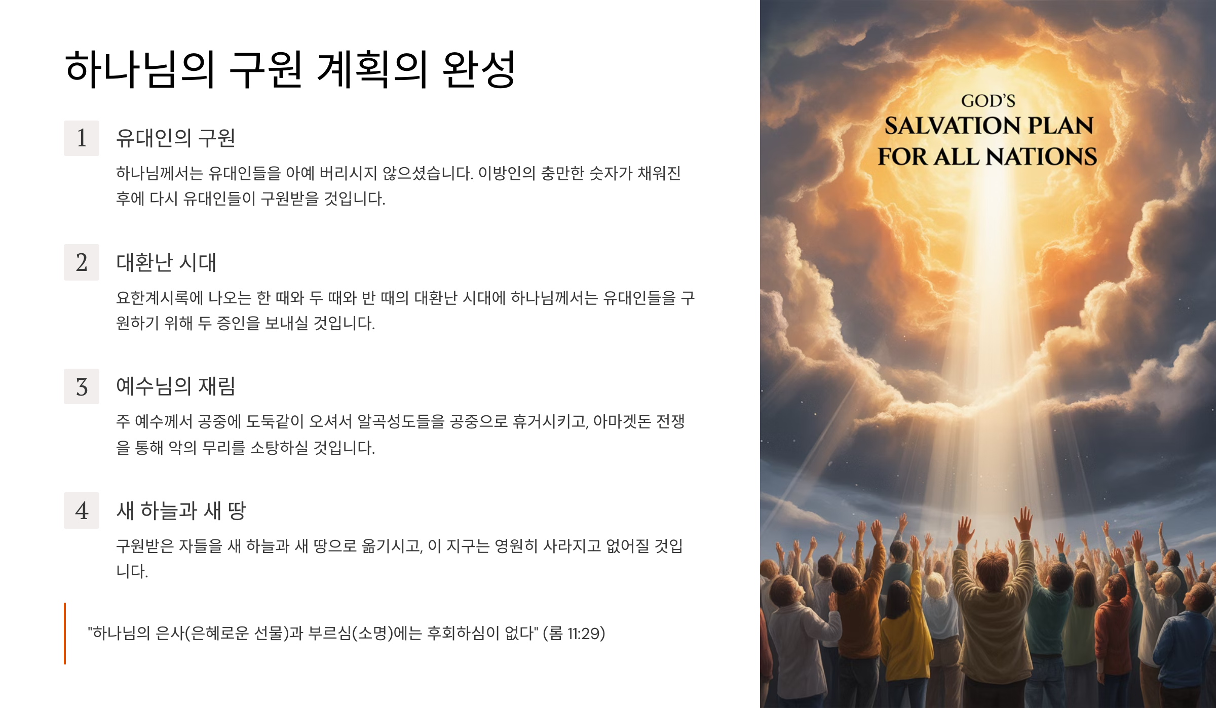 4. 이스라엘의 구원과 이방인들의 구원은 어떻게 이뤄지고 있는가?