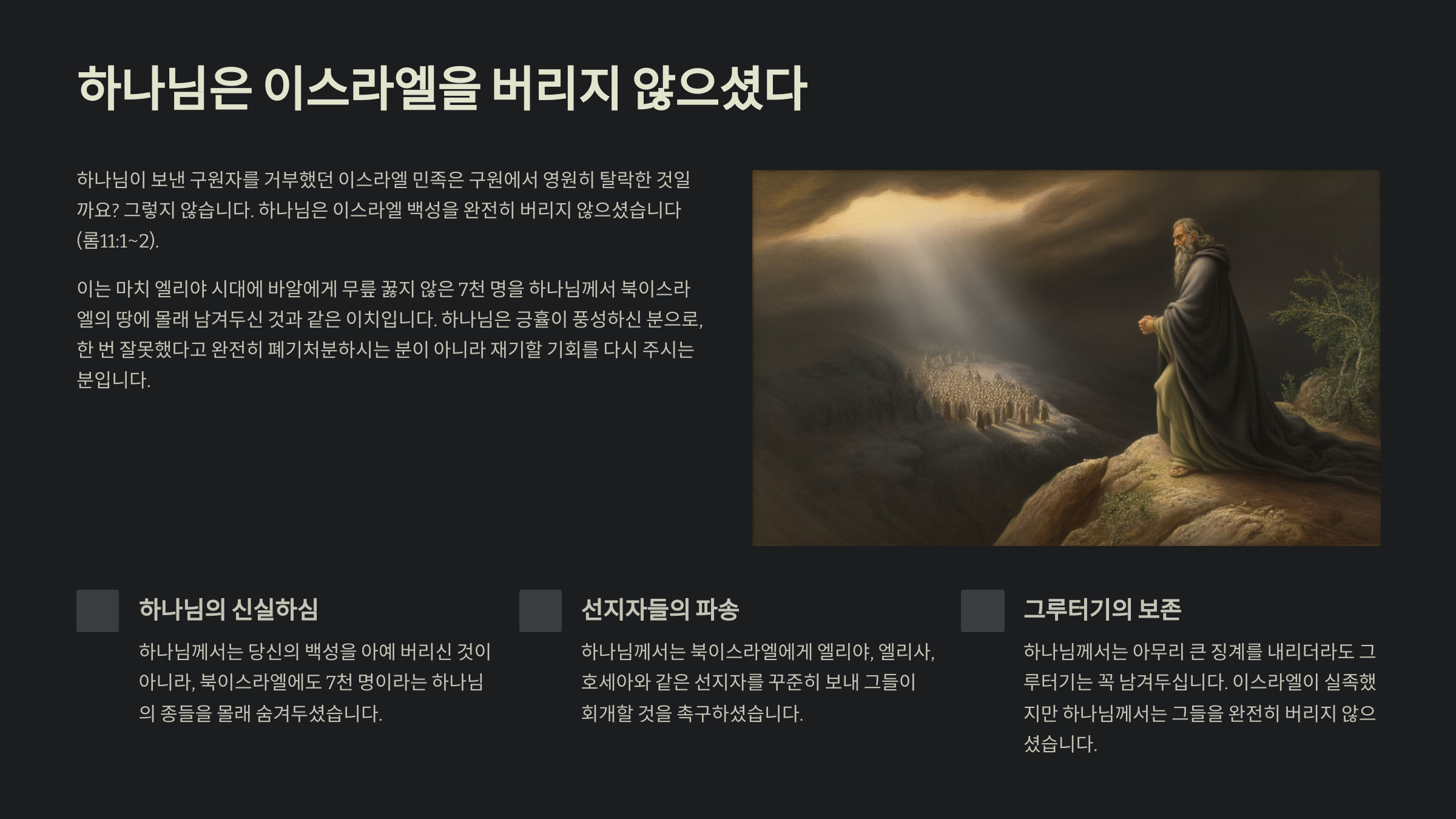 4. 하나님께서는 정말로 이스라엘을 완전히 버리셨는가?