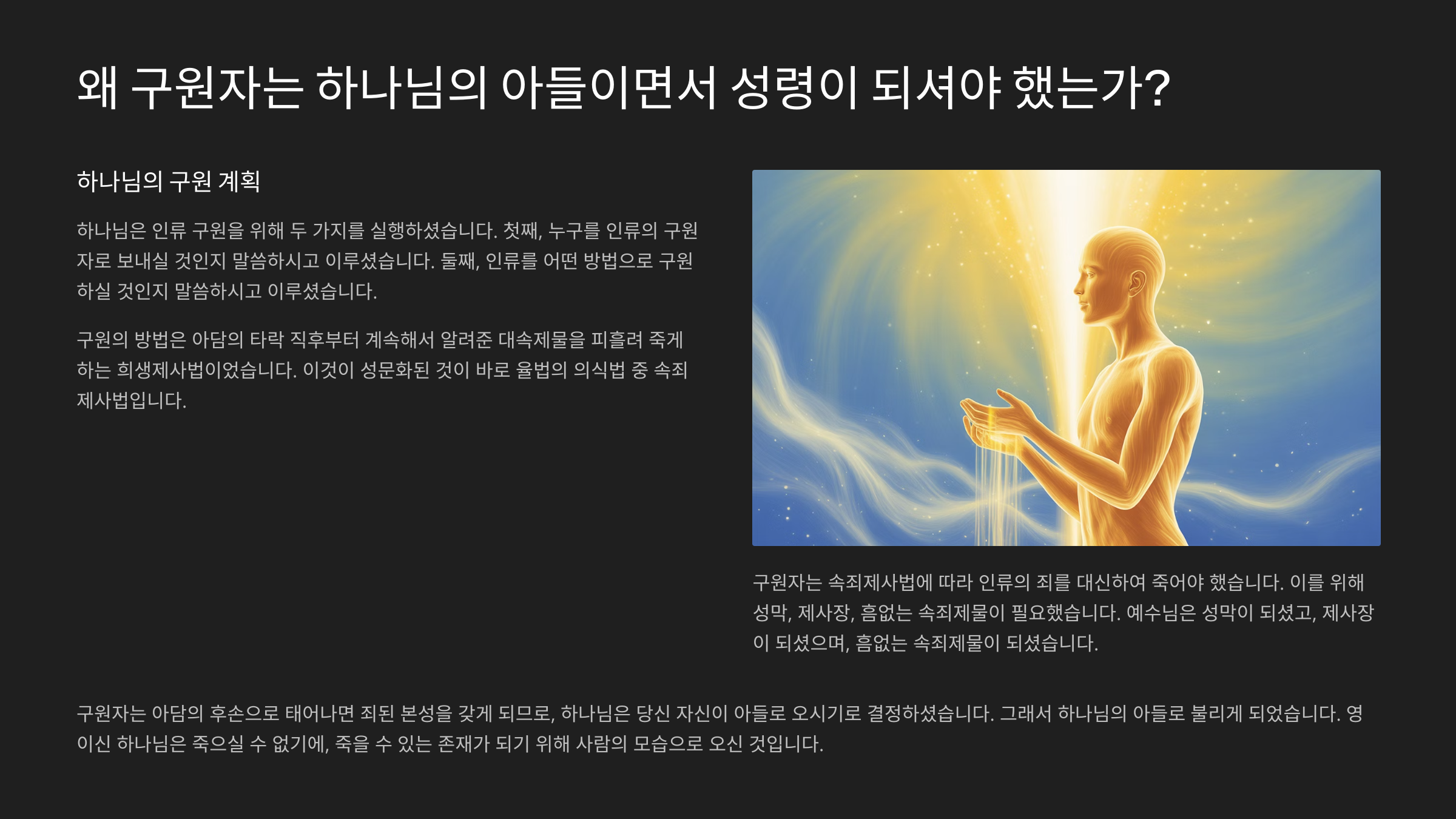 3. 왜 구원자는 사람이지만 하나님의 아들이어만 했으며, 나중에는 그가 성령이 되셔야 했는가?