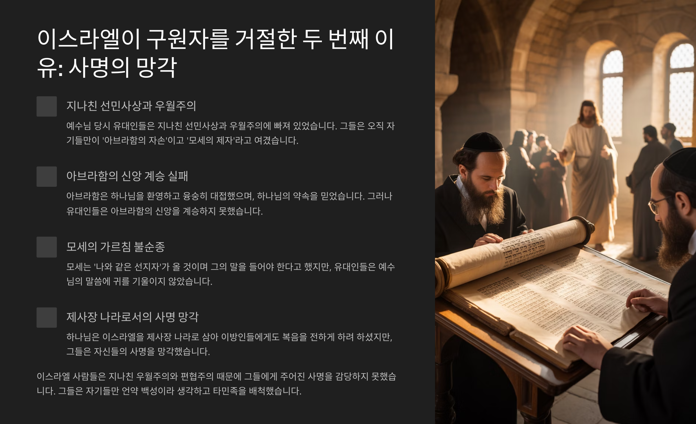 4. 자기 땅에 자기 백성에게 온 구원자를 왜 이스라엘은 거절하고 말았는가?