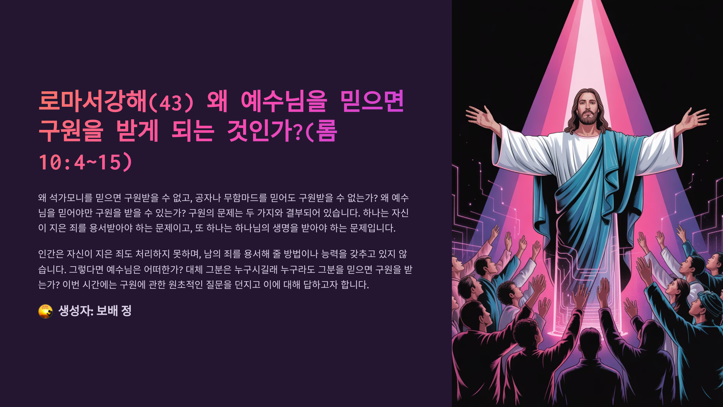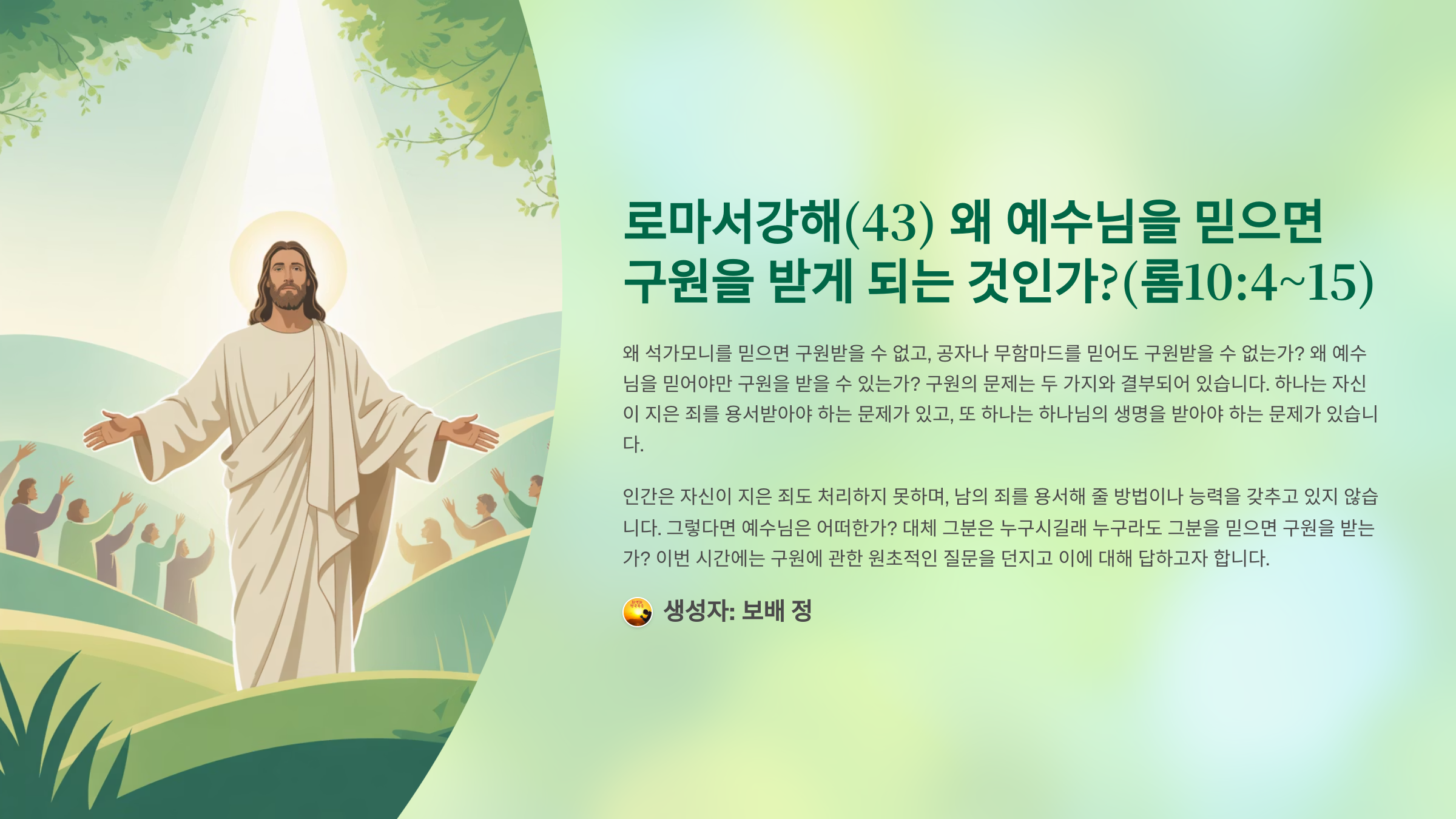 제목: [로마서강해(43)] 왜 예수님을 믿으면 구원을 받게 되는 것인가?(롬10:4~15)_2025-06-17(화)