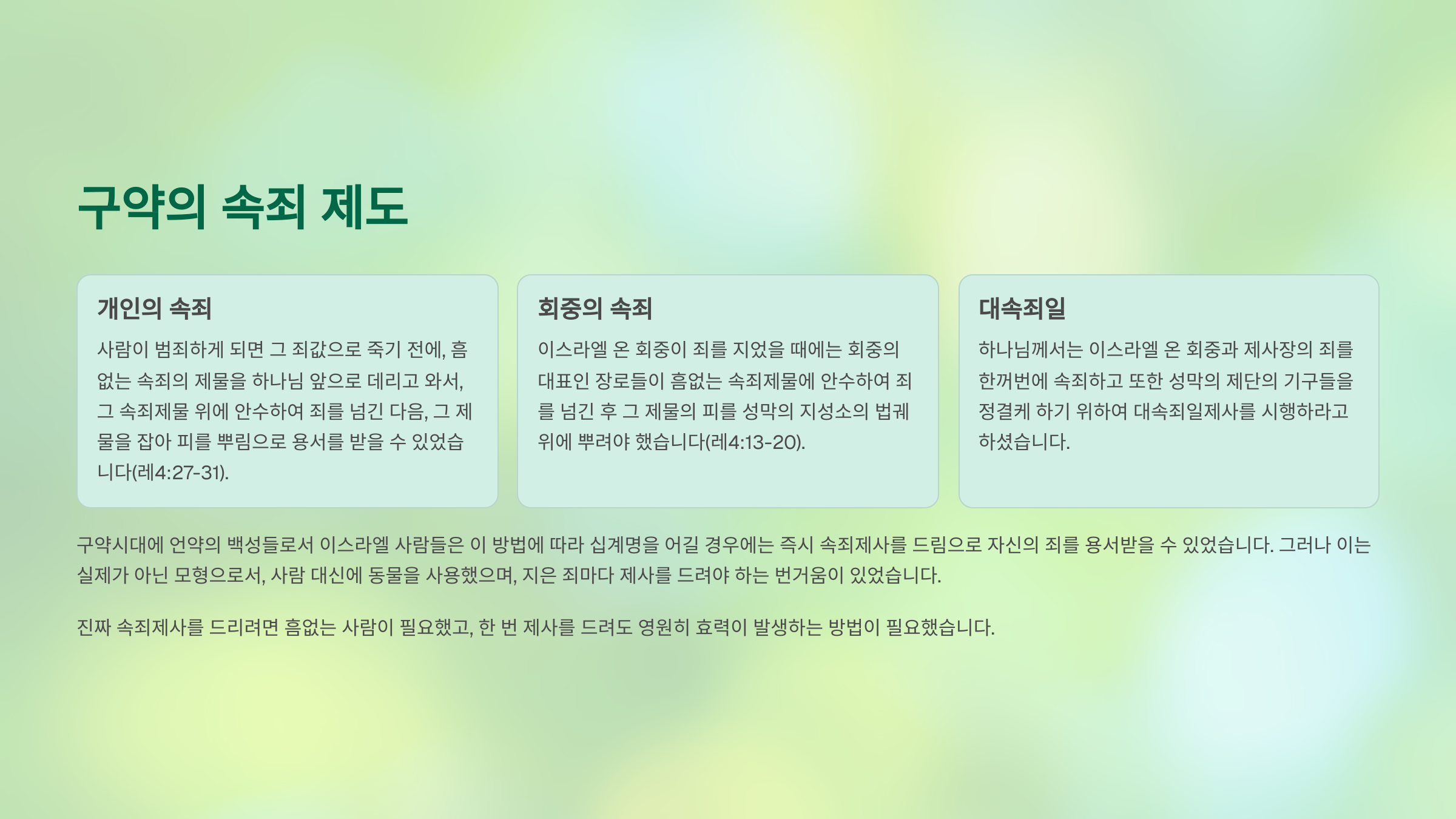 4. 하나님께서 범죄한 인류를 위해 만드신 속죄의 방법은 무엇이었는가?